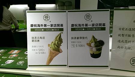 10/4(六)~5(日) 來店前108名 ==> 抹茶北海道霜淇淋18元