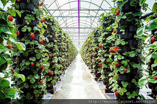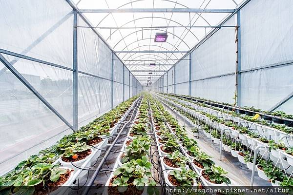 溫室並使用十道過濾的純淨水灌溉草莓,每一株草莓都是自動供水及養分,才能不用農藥,長出大而香甜的草莓。